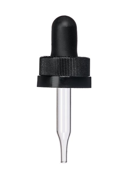 Black PP plastic 18-400 ribbed skirt child-resistant dropper assembly